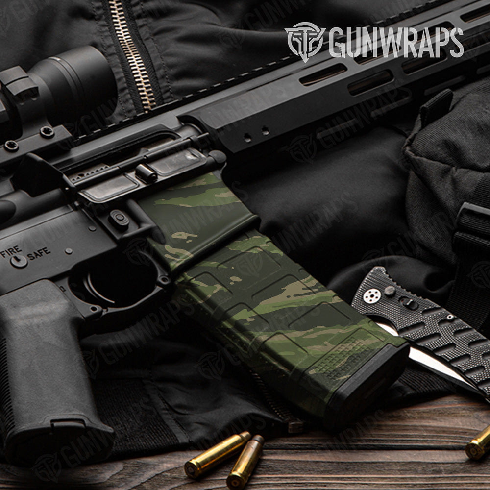 AR 15 Mag & Mag Well Vietnam Tiger Stripe Army Green Gun Skin Vinyl Wrap