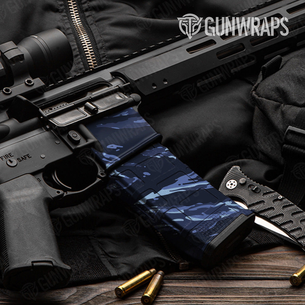 AR 15 Mag & Mag Well Vietnam Tiger Stripe Blue Urban Night Gun Skin Vinyl Wrap